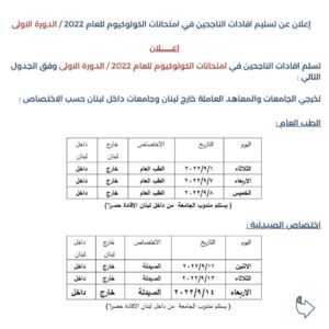 أخبار لبنانية إليكم مواعيد تسليم إفادات الناجحين في “الكولوكيوم” 2022-08-17 0 صدر عن وزارة التربية جدول مواعيد تسليم إفادات الناجحين في إمتحانات الكولوكيوم للعام 2022 / الدورة الأولى. ??خدمة الخبر العاجل??