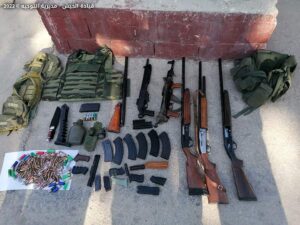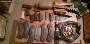 بتاريخ 5 / 9 /2022، دهمت قوة من الجيش منازل عدد من المطلوبين في بلدة القرعون – البقاع، حيث أوقفت المواطنَين (م.م) و(ح.د). وضبطت داخلها سلاحاً حربياً نوع كلاشنكوف، وبنادق صيد مع ذخائرها، بالإضافة إلى كمية من الذخائر الحربية وأعتدة عسكرية. سلمت المضبوطات وبوشر التحقيق مع الموقوفيَن بإشراف القضاء المختص.