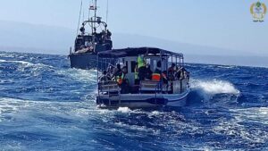 نتيجة عملية رصد ومتابعة لمحاولة تهريب أشخاص عبر البحر بطريقة غير شرعية مقابل بلدة العريضة- عكار، تمكنت القوات البحرية من الوصول إلى المركب المستعمَل للتهريب على بُعد ٦ أميال بحرية عن الشاطئ. وقد تبين أن المركب أصيب بعطل في وقت سابق، وعلى متنه ٥٥ شخصًا بينهم إمرأتان حاملان وطفلان. كما أن ربانه غادره على متن زورق قبل وصول الجيش. قامت القوات البحرية بسحب المركب نحو الشاطئ، وبوشر التحقيق بإشراف القضاء المختص.