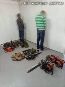 بتاريخ 30 / 9 / 2022، دهمت دورية من الجيش منازل مطلوبين لقيامهم بقطع الأشجار في بلدة نبحا – بعلبك. نتيجة الدهم، أوقِف المواطنان (م.أ)، (س.أ) وضُبِطت أسلحة حربية وذخائر وعدد من مناشير الحطب وكمية من الحطب. سلمت المضبوطات وبوشر التحقيق مع الموقوفيَن بإشراف القضاء المختص.